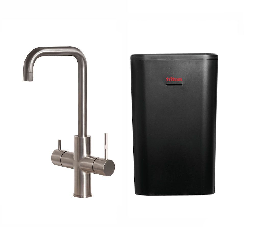 Triton is een kokendwatersysteem bestaande uit een hogedruk boiler van roestvrijstaal 4,4 liter en een mechanisch bediende 3-in-1 kraan met een kokend water output van 100°C. Advies: monteer de Triton filterset TRIFILSET
